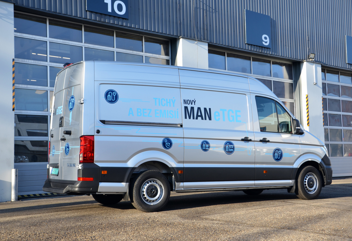 Od januára si slovenskí zákazníci môžu objednávať novinku v ponuke vanov značky MAN – plne elektrický eTGE. Dodávkové vozidlo s nulovými emisiami pri prevádzke má vo verzii L3H3 objem nákladného priestoru 10,7 m3 a užitočné zaťaženie takmer 1 tonu. V režime mestskej alebo prevažne mestskej prevádzky poskytuje reálny akčný rádius 120 až 140 km.
