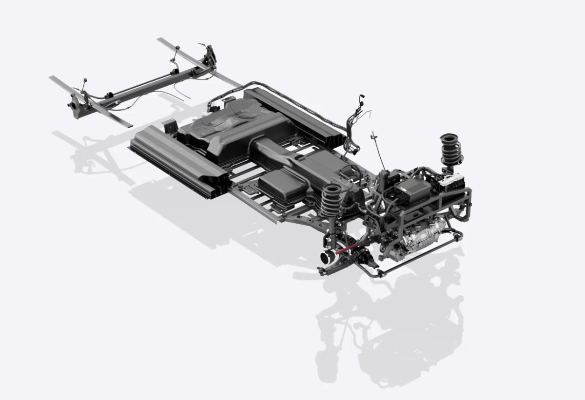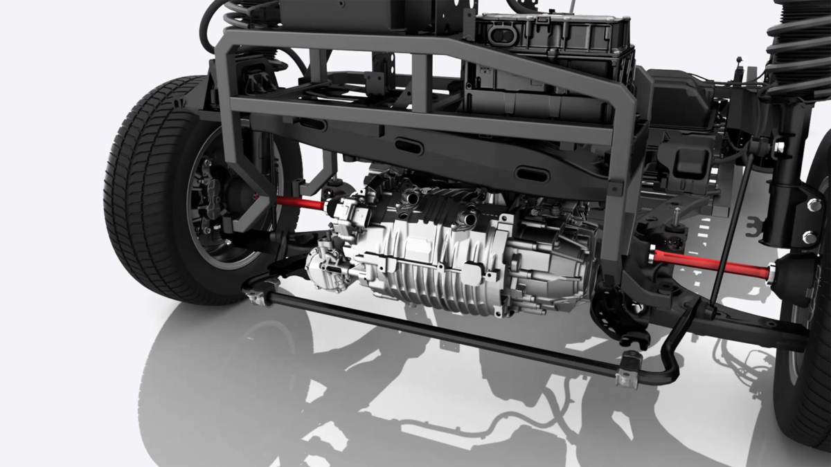 Z hľadiska konštrukcie stojí tiež za zmienku, že už pri vývoji dieselového modelu sa počítalo aj s optimálnym integrovaním komponentov elektrického pohonu. Príkladom je sofistikované, priestorovo úsporné umiestnenie batérií pod podlahu, ktoré si vyžiadalo iba mierne väčšiu svetlú výšku podvozka – pri eTGE je nakladacia hrana o 10 cm vyššia (konštrukcia je identická s dieselovou verziou s pohonom zadných kolies). Takže v konečnom dôsledku má nákladný priestor takmer zhodné parametre s porovnateľným dieselovým modelom: maximálnu dĺžku podlahy 3450 mm, šírku 1380 mm a vnútornú výšku 1861 mm.