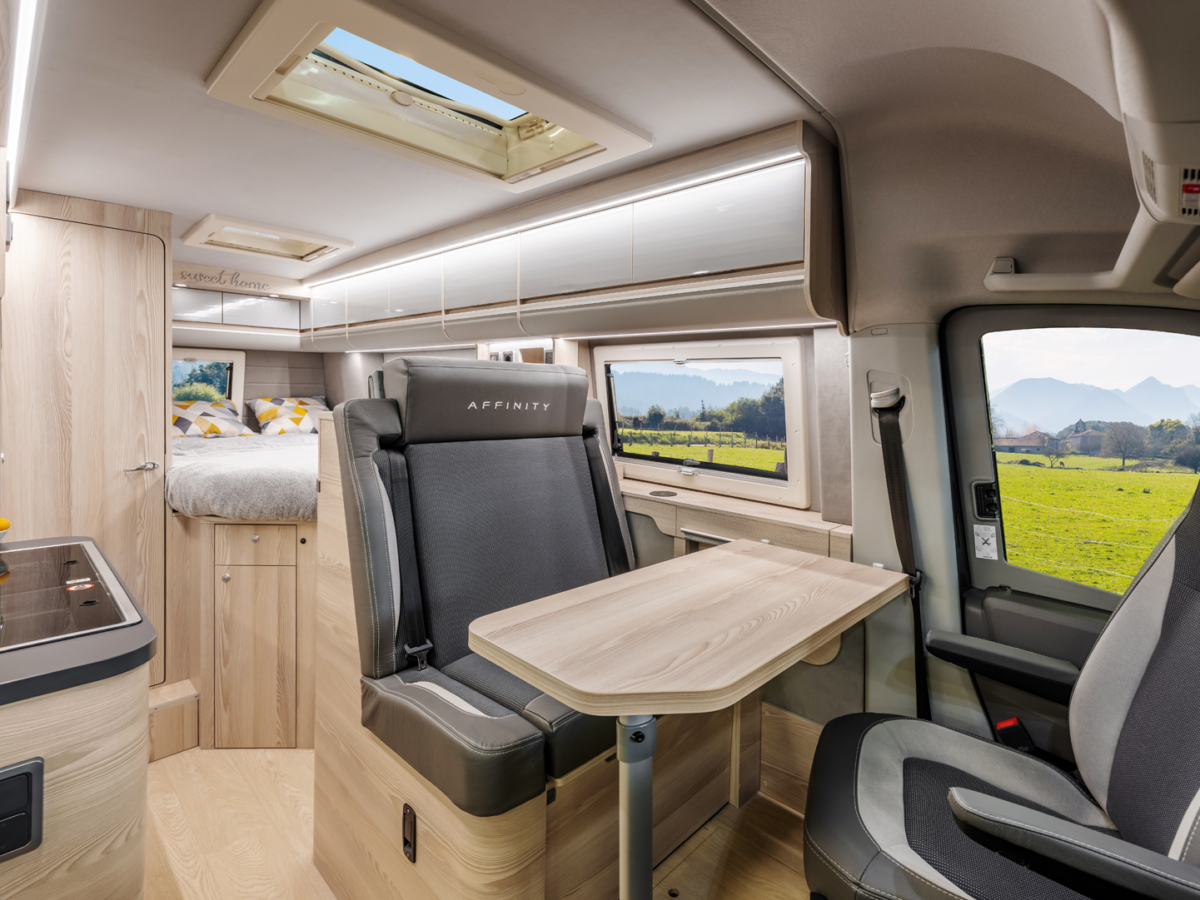 Špecialisti z Affinity navrhli na karosérii svojho prvého karavanu na báze vanu MAN TGE množstvo úprav a vytvorili pôsobivý i praktický interiér. Predĺžené bočné steny – jedinečné riešenie tohto druhu na trhu – umožnili včleniť do zadnej časti obývacieho priestoru usporiadanie s francúzskou posteľou a kompaktnou kúpeľňou, v ktorej je sprcha, toaleta a výsuvné umývadlo. Konštruktéri integrovali do interiéru aj kuchynský kútik, skladací stôl, rozkladacie tretie lôžko i množstvo skriniek a dômyselných odkladacích priestorov. Obytný automobil „Affinity M“ dostal novú svetlú farebnú schému s povrchovými materiálmi pastelových tónov, čo spolu s decentným osvetlením vytvára útulnú atmosféru.