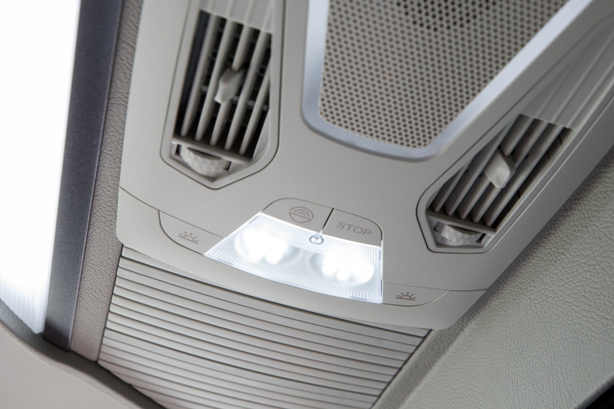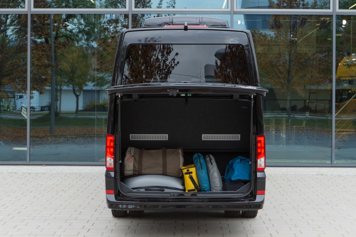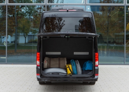 Hlboký batožinový priestor v krásnej zadnej časti vozidla má už v štandardnom vyhotovení objem 1700 litrov. Okrem toho vo vnútri minibusu sú police na batožiny a každý cestujúci má k dispozícii svetlo na čítanie a výduch vetrania – ako vo veľkom autokare. Nastupuje sa rýchlo a pohodlne cez výkyvné dvere na pravej strane ovládané pantografom. Prvé sedadlo za dverami sa na prianie dá vybaviť aj mikrofónom, aby slúžilo ako miesto pre sprievodcu. V prednej časti vozidla možno tiež inštalovať 15-litrovú chladničku na studené nápoje. Priestranný, svetlý a príťažlivý interiér je dostupný v dvoch farebných schémach – pretože cestovanie je oveľa príjemnejšie, ak prostredie nie je len šedé. Súčasťou niektorých konfigurácií sedadiel je aj pevne inštalovaný stôl – ďalší spôsob, ako dostať výbavu na inú úroveň. Veľké tónované okná s dvojitým zasklením zabezpečujú maximálnu izoláciu pred prudkým svetlom i vonkajším hlukom.