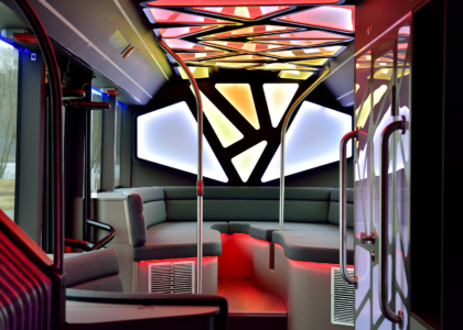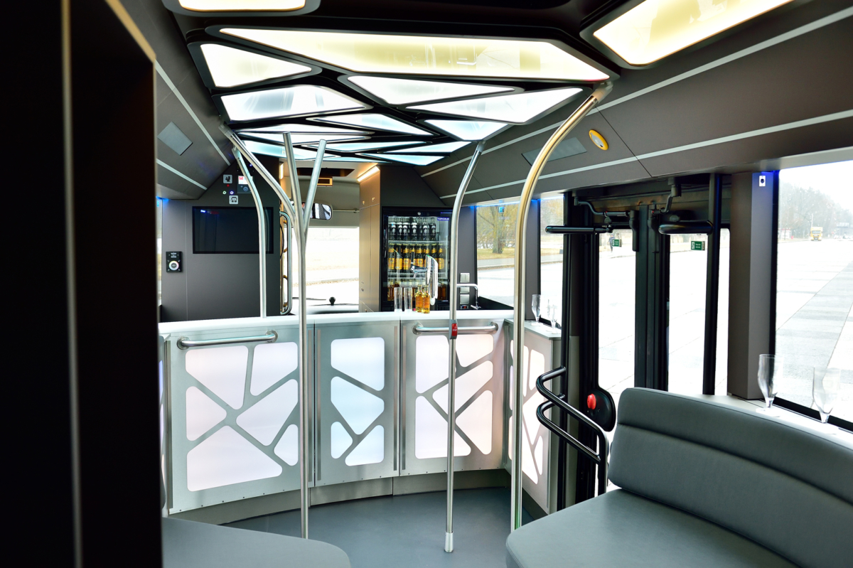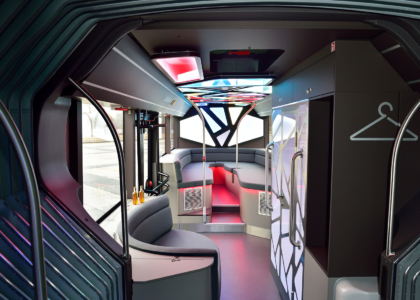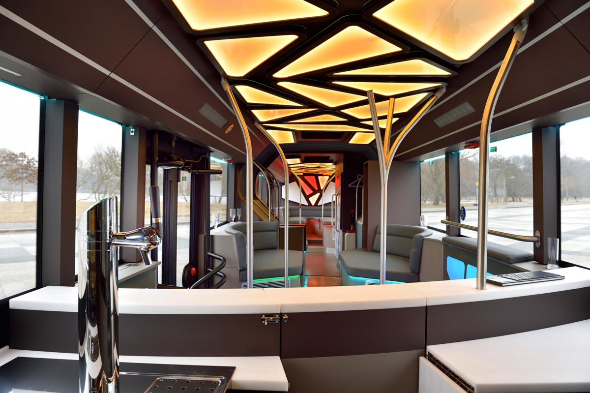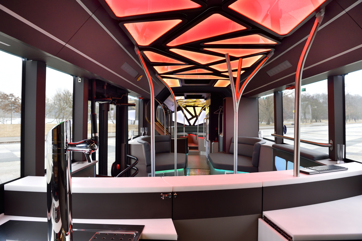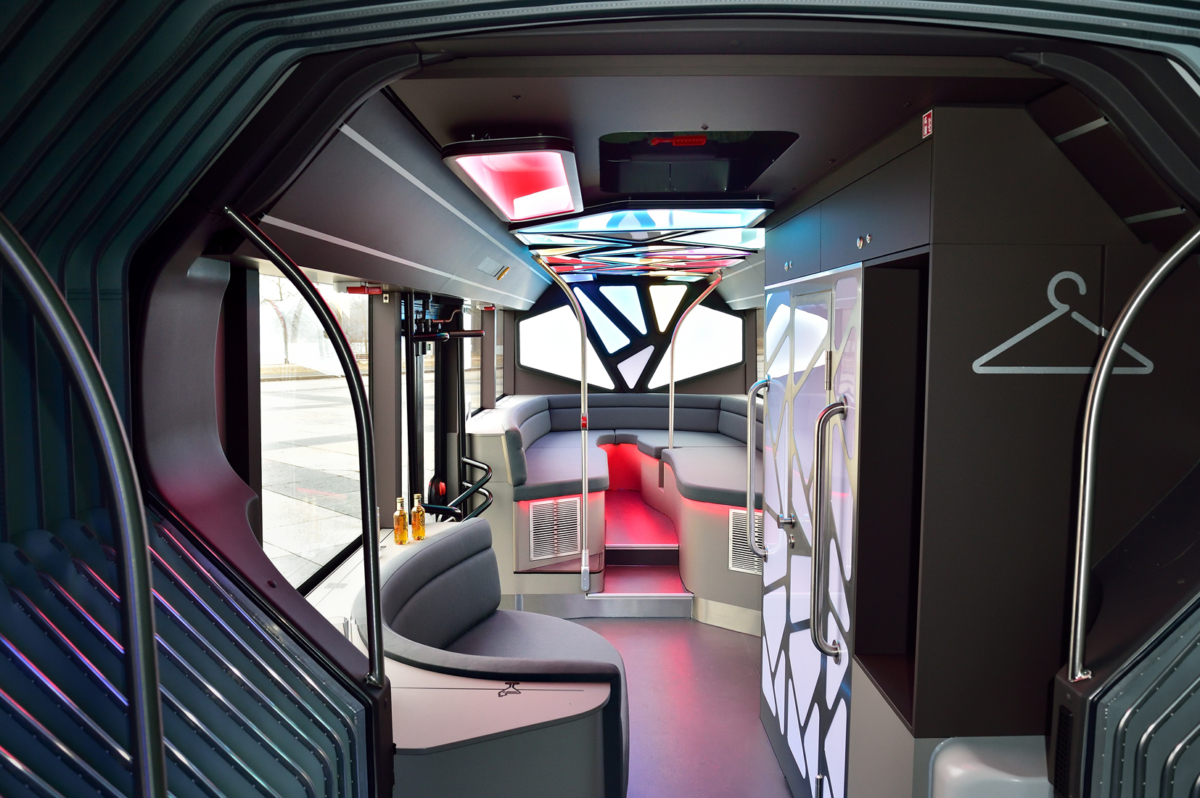Návštevníci túžiaci po zábave si môžu zatancovať na priestrannom tanečnom parkete uprostred autobusu. Ak si chcú oddýchnuť, k dispozícii majú pohodlné kreslá v zadnej časti alebo ďalšie miesta na sedenie. „Pri navrhovaní dizajnu autobusu sme sa zamerali na organické tvary. Pozoruhodné sú najmä dynamické a výrazné krivky,“ povedal Heinz Kiess, riaditeľ predaja a marketingu MAN Bus Modification Center v nemeckom Plauene.