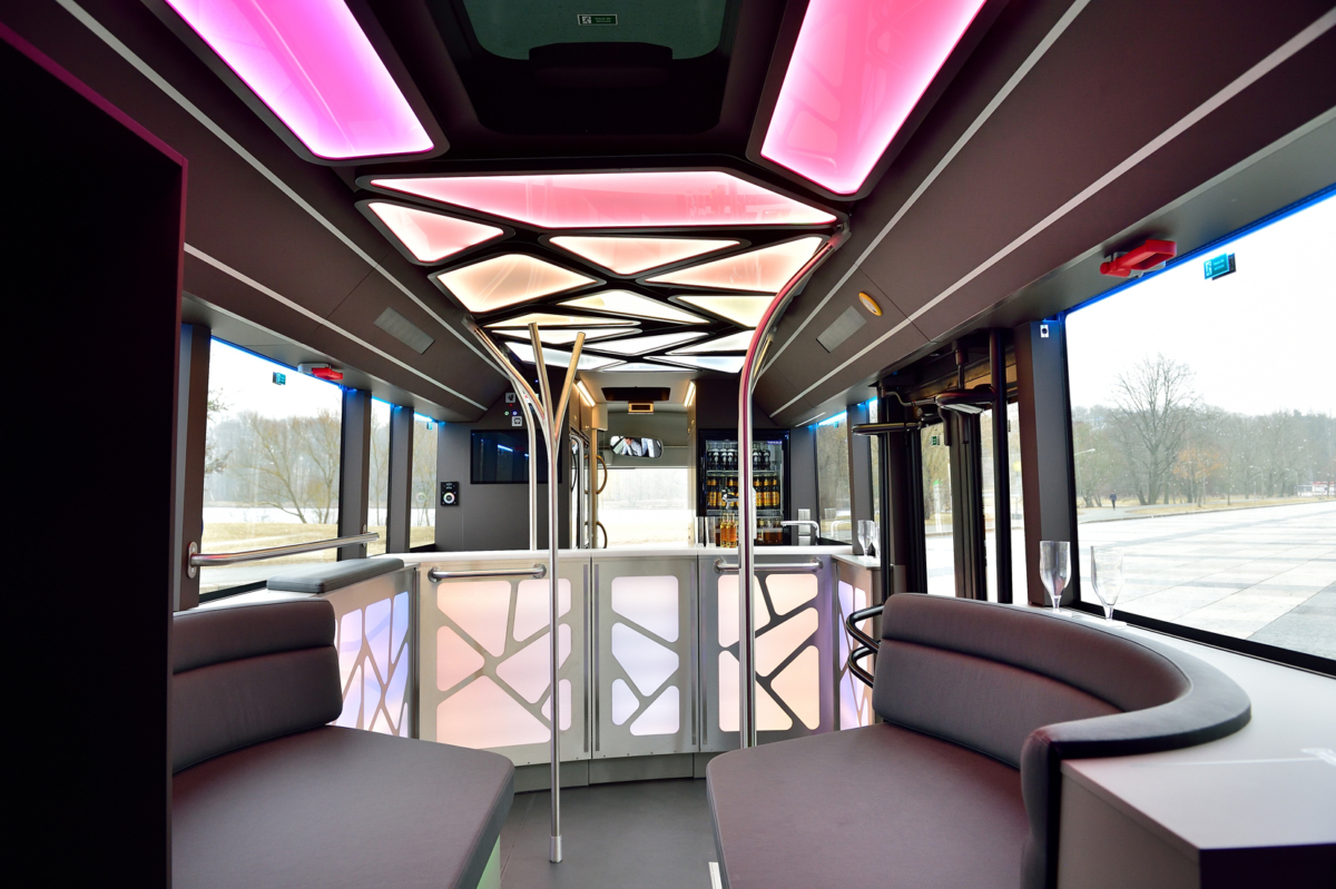 Diskotéka na kolesách je vybavená i monitorom pre sociálne médiá a kamerou s ultra širokouhlým objektívom. Hostia sa tam môžu nielen odfotografovať, ale fotky aj zdieľať na sociálnych sieťach. Kĺbový autobus dlhý 18,75 metrov pojme okolo 45 cestujúcich. Ich bezpečnosť a komfort garantuje elektronický brzdový systém EBS s funkciami ABS a ASR, ako aj elektronický stabilizačný program ESP. Vozidlo poháňa motor Euro 6 s výkonom 310 k (228 kW).
