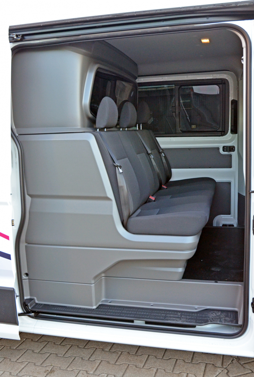 Vo vozidle, ktoré prepravuje tím „Fialiek“, sa o príjemnú teplotu v interiéri ešte pred naštartovaním postará nezávislé kúrenie s diaľkovým ovládaním, prídavné vykurovanie s výduchmi pre cestujúcich na druhom rade sedadiel má samostatné nastavenie teploty aj intenzity fúkania vzduchu a izoláciu vylepšujú dvojité sklá bočných okien. V mrazoch vodiči iste ocenia vyhrievanie čelného skla a v zimnom období určite dobre padnú aj FULL LED svetlá. Dodávka s dvojitou kabínou má dva rady sedadiel (3+3), na ktorých sa komfortne odvezie päťčlenný tím v takejto zostave: pretekárky Paulína a Ivona Fialkové, trénerka Anna Murínová (bývalá reprezentantka v biatlone), tréner Martin Bajčičák (bývalý reprezentant v behu na lyžiach) a fyzioterapeut Rado Jambor. Za volantom sa bude striedať trénerský tandem.