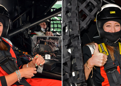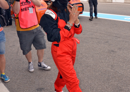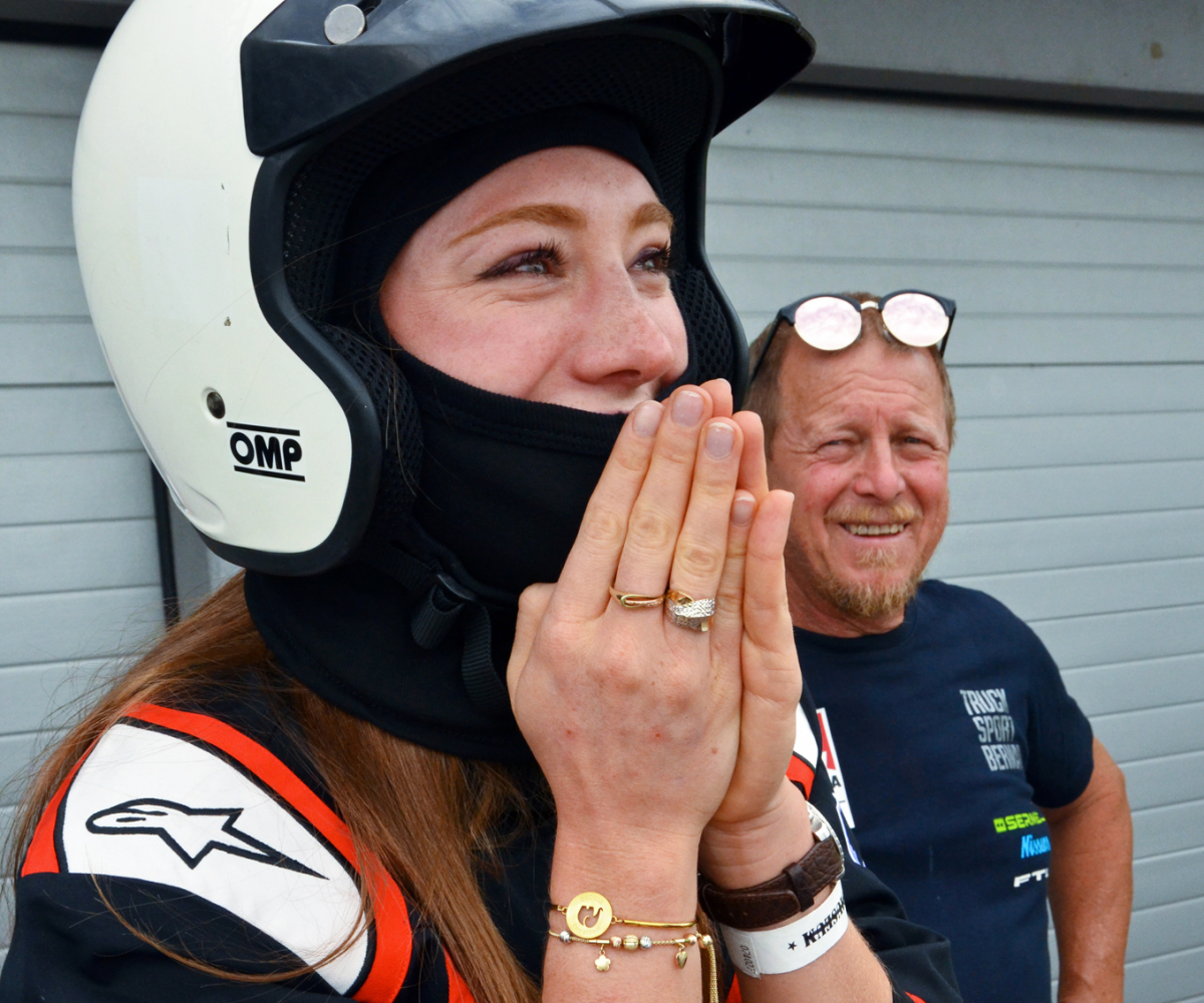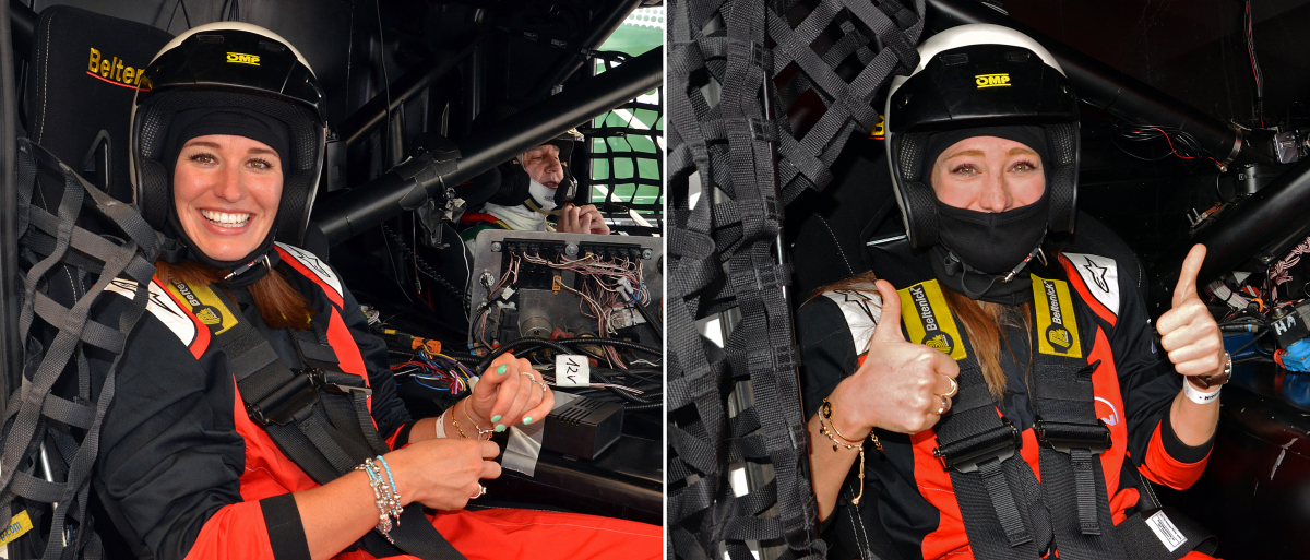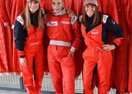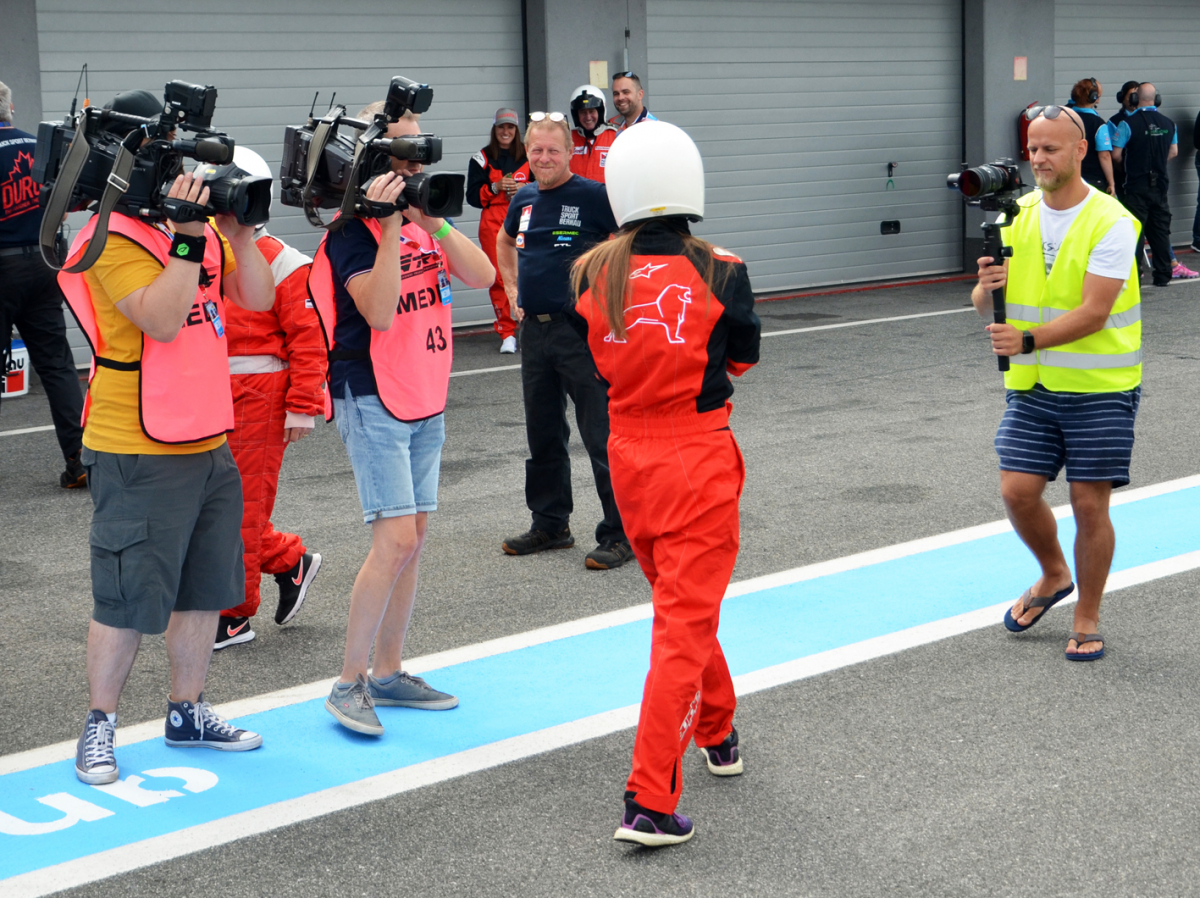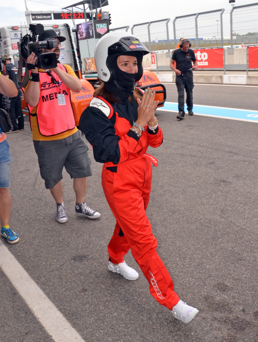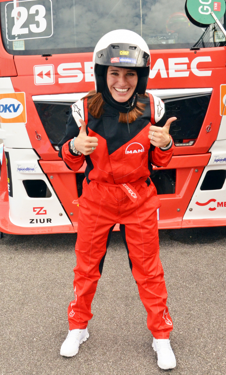 Samozrejme, že naše „Fialky“ budú voziť piloti, ktorí štartujú na truckoch MAN. Jedným z nich je Antonio Albacete, dvojnásobný majster Európy a dlhé roky španielsky pretekár číslo 1. Tak žiaden strach. Lenže to sa ľahko povie a na fotografiách vidno, že adrenalín pekne stúpal. O poradie si sestry strihli – ktorá vyhrá, pôjde na jazdu až druhá. Kameň verzus papier – a do kabíny vystuženej masívnym ochranným rámom nastupuje ako prvá Paulína. Pár minút trvá, kým ju riadne fest pripášu k anatomicky tvarovanému sedadlu, no o chvíľu už MAN s číslom 23 s patričným rámusom vyráža na trať. Po troch kolách je Antonio späť pri boxoch a vysmiata Paulína zdieľa svoje dojmy: „Som strašne prekvapená, bol to pre mňa obrovský zážitok, nič podobné som doteraz nezažila! Vôbec som sa nebála. Jasné, že kým som nastúpila, mala som riadne vysoký pulz. Aj tomu pánovi, čo ma sprevádzal k trucku, som vravela, že mám vyšší tep ako na štarte na pretekoch. Ale potom to bola zábava. Samozrejme, každý takýto deň si vážim, lebo dní, kedy máme tréningové voľno, je naozaj málo. A spríjemniť si ho takýmto programom pod záštitou nášho sponzora MAN je super.“