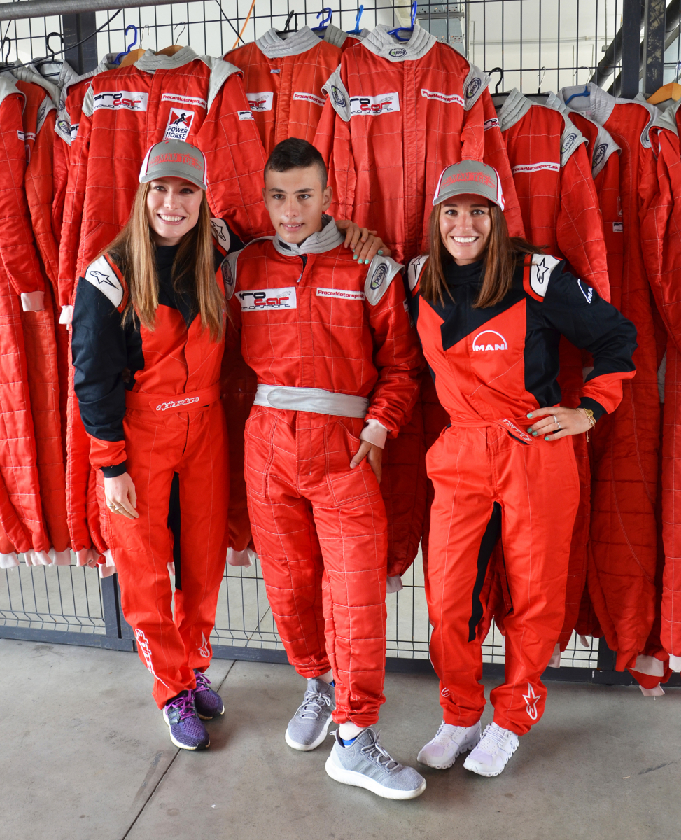 Dvojdňový program na Slovakia Ringu sa pre sestry začal v piatok napoludnie v boxe číslo 20. Tam bola prezentácia „race taxi“. Pre nezasvätených asi treba vysvetliť, že v rámci tejto atrakcie jazdci majstrovstiev Európy truckov vozia vo svojich špeciáloch VIP hostí jednotlivých značiek. V trme-vrme a vzrušenej atmosfére si Paulína a Ivona obliekajú pretekárske kombinézy, kukly, prilby… Smiech a dobrá nálada okorenená očakávaním do-posiaľ nepoznaného zážitku. Nuž, asi netušia, že pretekové ťahače sú zhruba o dve tony ľahšie a dvakrát rýchlejšie ako tie, čo vidíme na cestách, že majú motory s výkonom okolo 1100 koní a maximálnu rýchlosť v pretekoch limitujú predpisy na 160 km/h, inak by šli ešte podstatne viac. A spotreba? 100 l/100 km. Tak to je sila.
