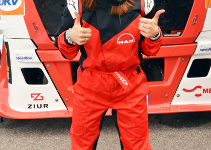 Ivona Fialková: „Prvýkrát sme sa ocitli na Slovakia Ringu a hneď na takýchto veľkých pretekoch truckov – je to určite silný zážitok. Piatkový program bol neskutočný – race taxi, škola šmykov aj off-road… To všetko som absolvovala prvýkrát v živote. Jazda na sedadle spolujazdca v pretekovom ťahači bola určite skvelá, lenže tam som bola pasívnou účastníčkou. Samozrejme, že som z toho mala vysoký pulz aj tlak a nevedela som, čo ma ča-ká, no nemusela som nič robiť. Z tohto pohľadu som si ešte viac užívala školu šmyku, pretože na dráhe bolo všetko v mojich rukách a získala som skúsenosť, ktorá sa v živote človeku môže zísť. Navyše zážitok bol aj to, že som si vyskúšala šmyky na našom Albínovi, tégééčku, ktoré nás vozidlo celú minulú zimu. Určite je dobré vedieť, ako sa na šmykľavom povrchu správa takéto veľké auto. Takže toto bol pre mňa najväčší zážitok. Ešte nás čakajú hlavné preteky ťahačov a na to sa tiež veľmi teším – budeme držať palce MANu!“