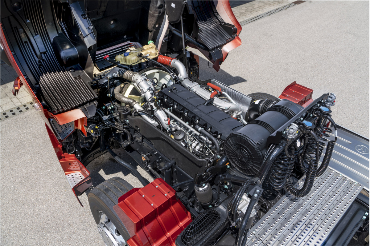 Pozoruhodne ľahký podvozok (pohotovostná hmotnosť 8,95 t) ponúka pre sektor transportu betónových zmesí vysoké užitočné zaťaženie vďaka novému, ľahšiemu motoru D15 a hypoidným nápravám.