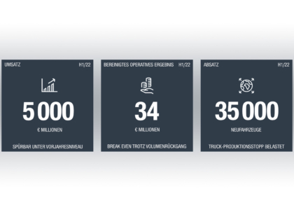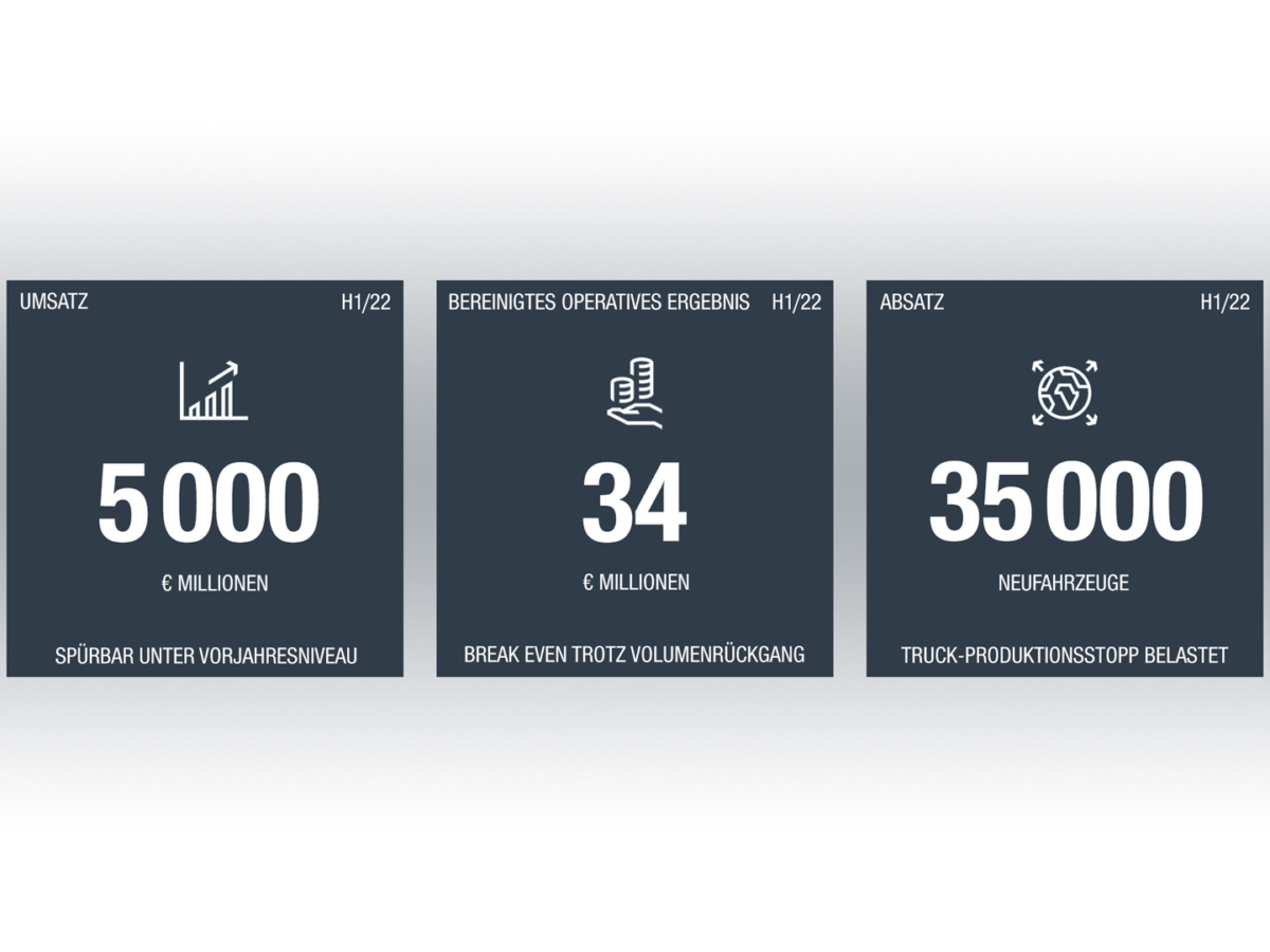 Výrobca úžitkových vozidiel MAN Truck & Bus dokázal v prvom polroku 2022 dosiahnuť obrat zhruba 5 miliárd eur, čo bolo – podľa očakávania – výrazne menej ako vlani. Vzhľadom na šesťtýždňové zastavenie výroby v závodoch produkujúcich nákladné vozidlá, ktoré bolo spôsobené nedostatkom komponentov súvisiacim s vojnou na Ukrajine, oznámil MAN za 2. štvrťrok miernu prevádzkovú stratu. Napriek tomu po solídnom 1. štvrťroku upravený hospodársky výsledok za prvý polrok dosiahol 34 miliónov eur. Prevádzkový zisk bol okrem poklesu tržieb ovplyvnený najmä vývojom cien materiálov a energií.