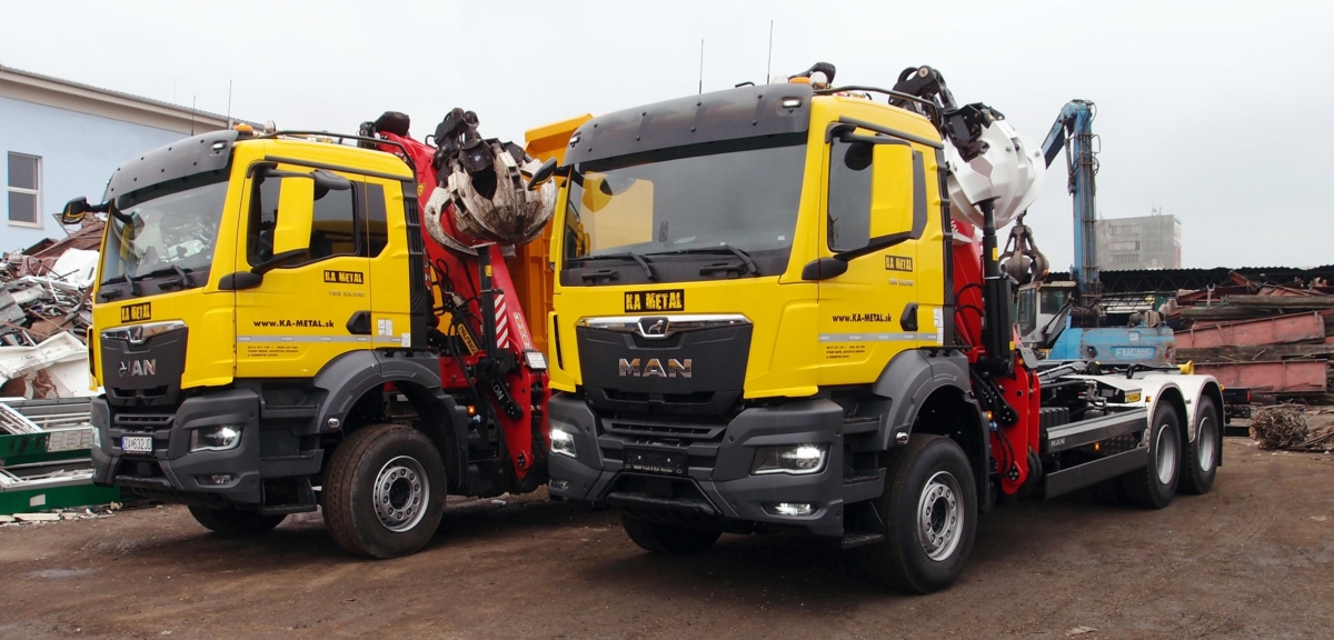V drsnom prostredí spracovania kovového šrotu doslova žiaria typické sýtožlté kabíny truckov s veľkým logom KA-METAL. Vďaka tomu ich dobre poznajú na pravidelných trasách, po ktorých jazdia. V marci si majitelia tejto žilinskej spoločnosti prevzali dve vozidlá z novej generácie modelového radu MAN TGS. Samozrejme, s rovnakou farbou „dresu“, ale hlavne vo veľmi zaujímavej konfigurácii.