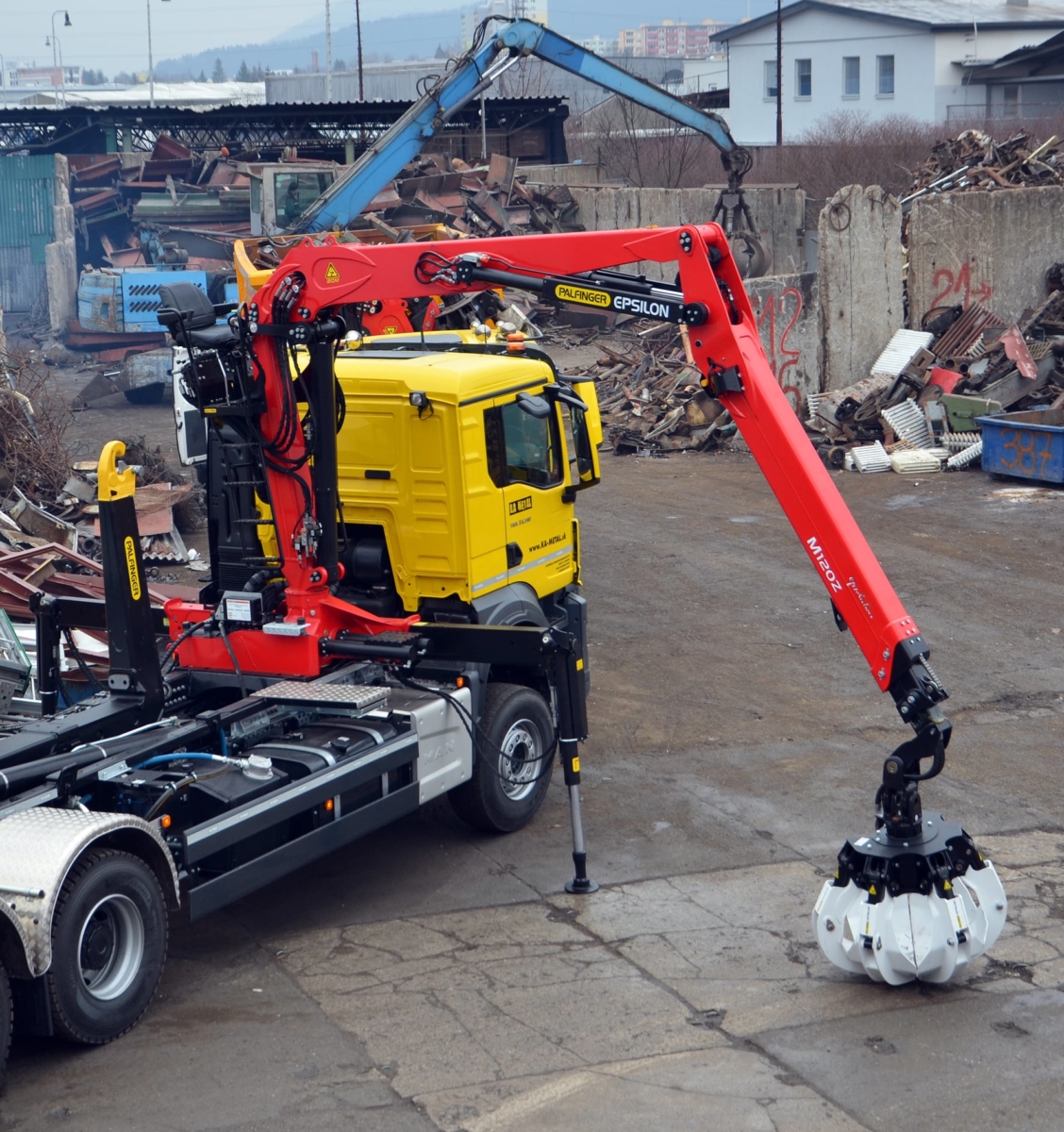 Čo sa týka nadstavby, obidve nové vozidlá sú vybavené žeriavom Palfinger Epsilon M120Z s drapákom. Samozrejmou súčasťou šrotárskeho trucku je hákový naťahovač kontajnerov.