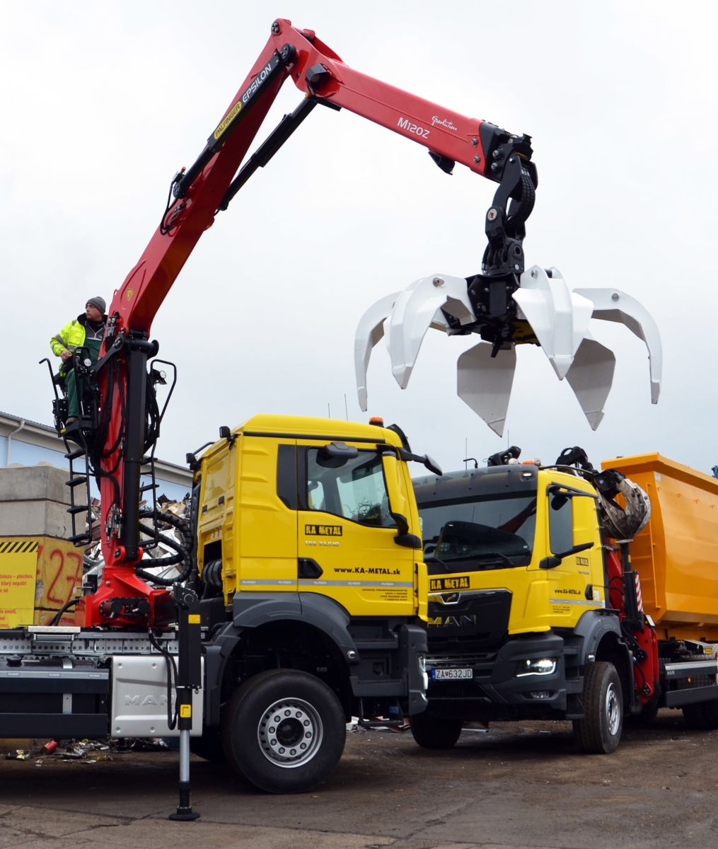 „Šrotárina“ je špecifický segment nákladnej dopravy, čo vidno aj na konfigurácii podvozkov vozidiel, na voliteľnej výbave i prídavných zariadeniach. „V posledných rokoch prevádzkujeme päť až šesť nákladných vozidiel. Pravda, keď sme začínali, bolo to ťažké. Nemali sme žiadnu techniku, ani len vysokozdvižný vozík, všetko sa robilo manuálne. Naše prvé nákladné auto malo výkon iba 360 koní, bolo bez hydraulickej ruky a fakt sme nevedeli, či ho vôbec uživíme. Momentálne máme dva valníky a štyri nákladné autá s rukou, z nich teraz už tri sú značky MAN. Používame aj tri prívesy s nadstavbami na prepravu šrotu. Pri dvoch nových podvozkoch TGS sme konfiguráciu konzultovali s predajcom MAN a dodávateľom nadstavieb, ale aj s našimi vodičmi, pretože šofér najlepšie vie, akú výbavu pri práci potrebuje, aké nové prvky by sa mu hodili a čo nevyužije. Na základe toho sa vyskladalo prvé vozidlo, ktoré sme ešte priebežne dolaďovali, bolo treba napríklad zvýšiť pätky žeriava. A na druhom aute sme už aplikovali získané poznatky,“ predstavuje vozidlový park Václav Kapec ml.