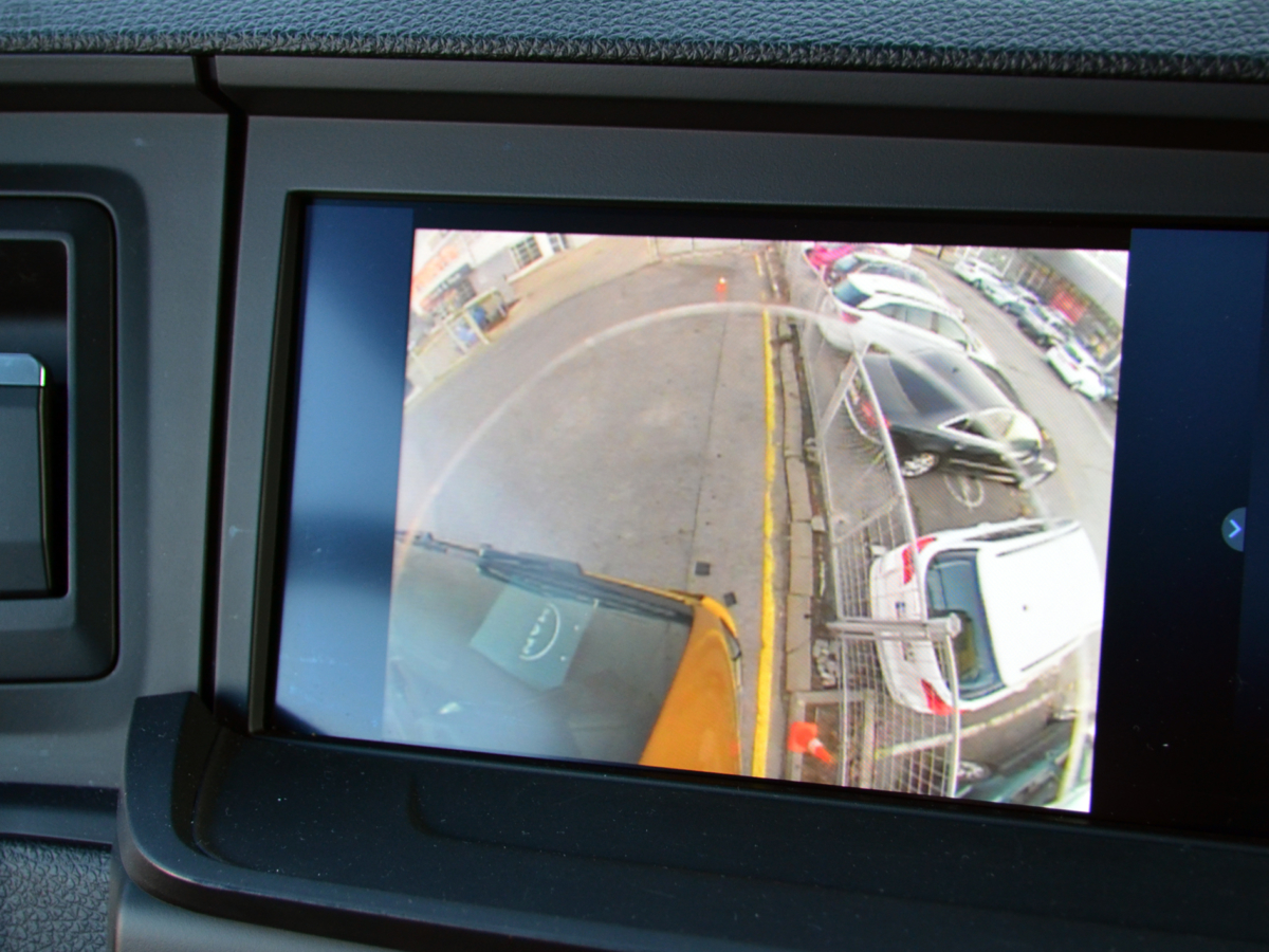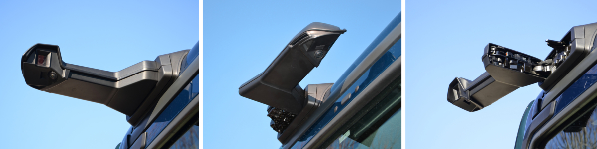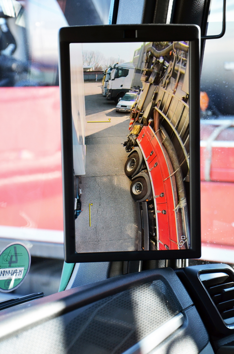 Širokouhlé zobrazenie: V tomto móde sa na monitoroch zobrazuje iba širokouhlý pohľad. To znamená, že snímané je bezprostredné okolie vozidla bez tzv. mŕtveho uhla. Vodič si môže vyberať z dvoch možností – v mestskom automatickom režime sa širokouhlé zobrazenie aktivuje automaticky až do rýchlosti 50 km/h, v automatickom režime pre prejazd zákrut sa aktivuje až do rýchlosti 50 km/h, ak použijete ukazovateľ zmeny smeru jazdy alebo keď je medzi vozidlom a návesom dosiahnutý určitý uhol.