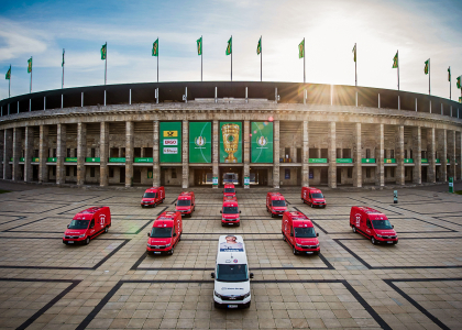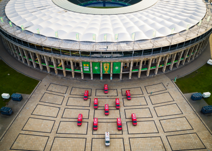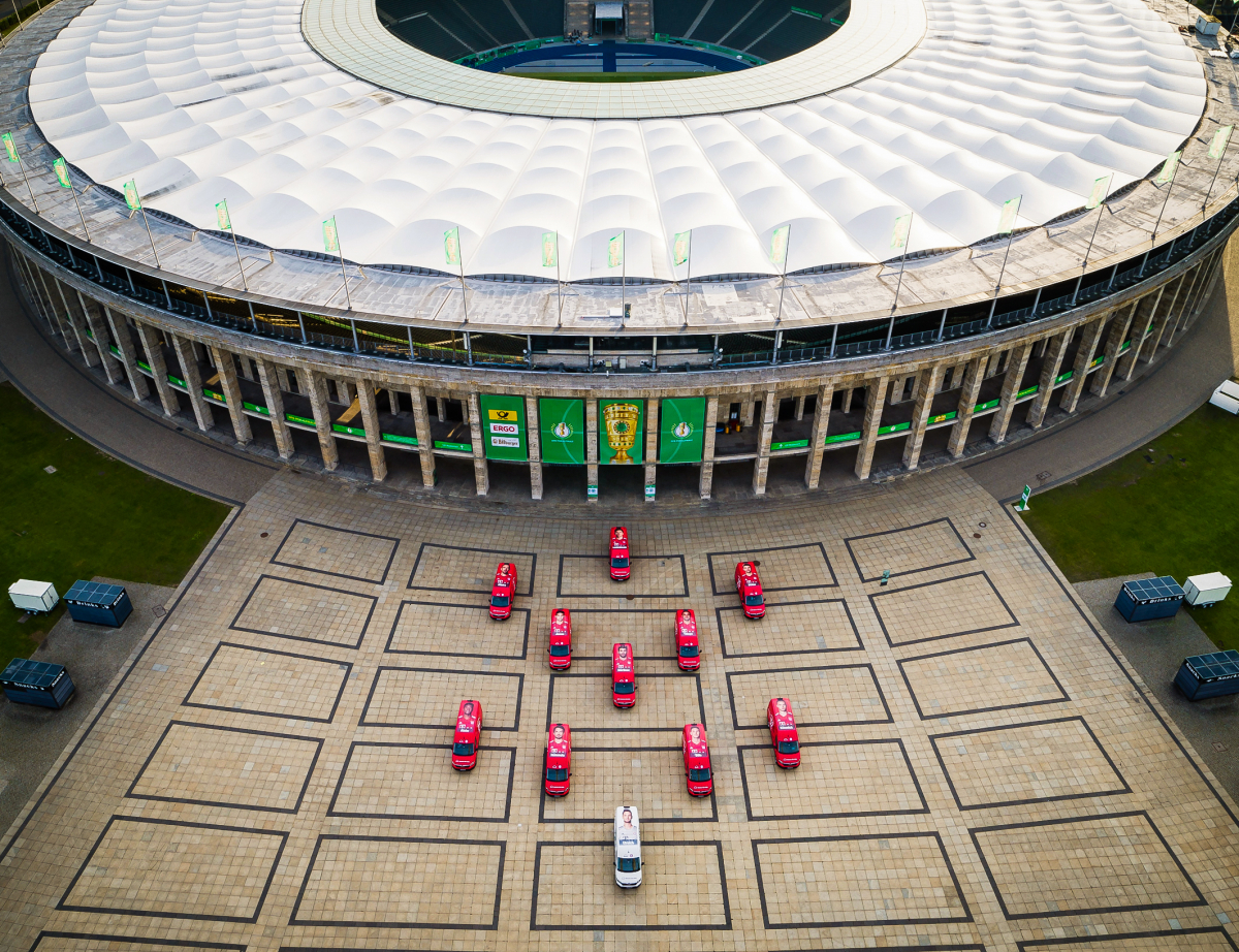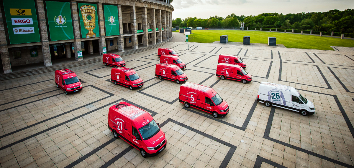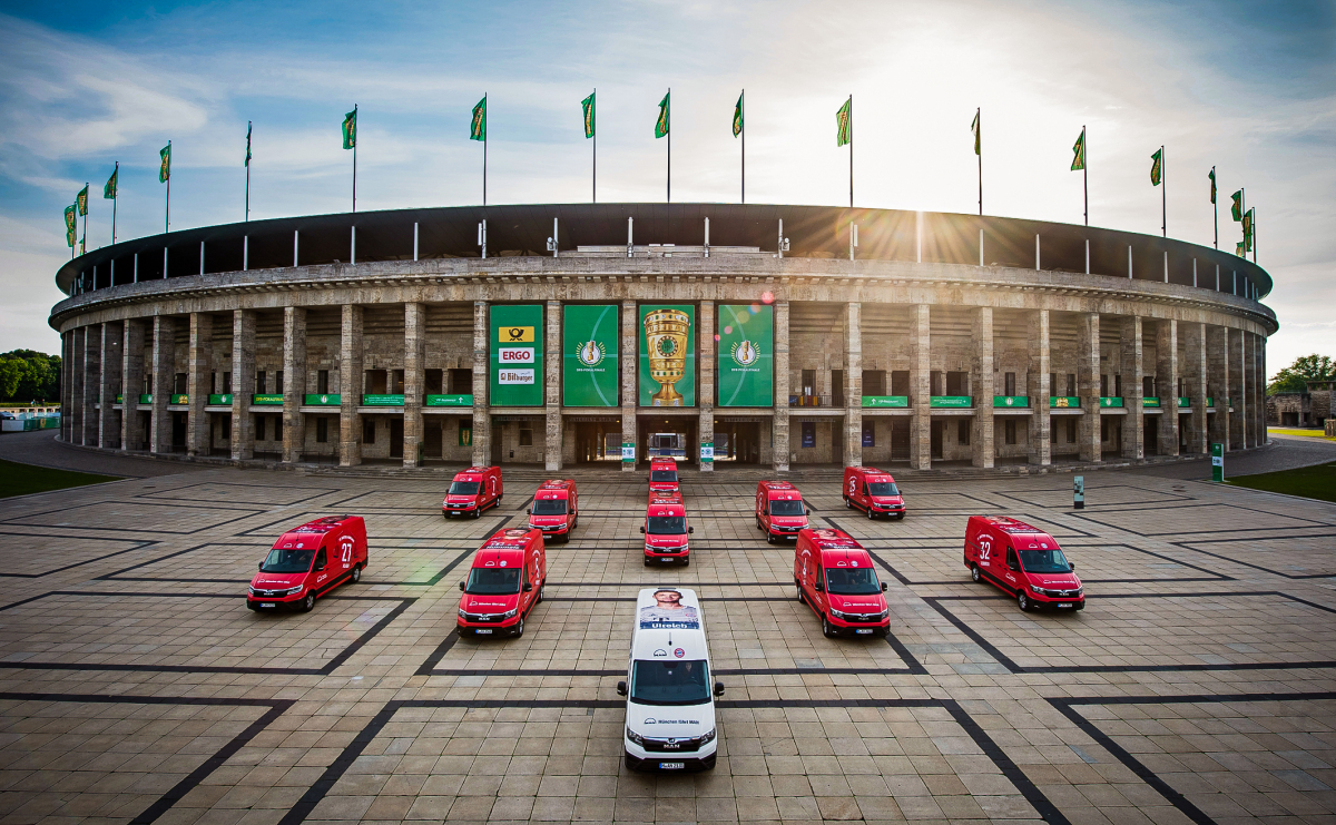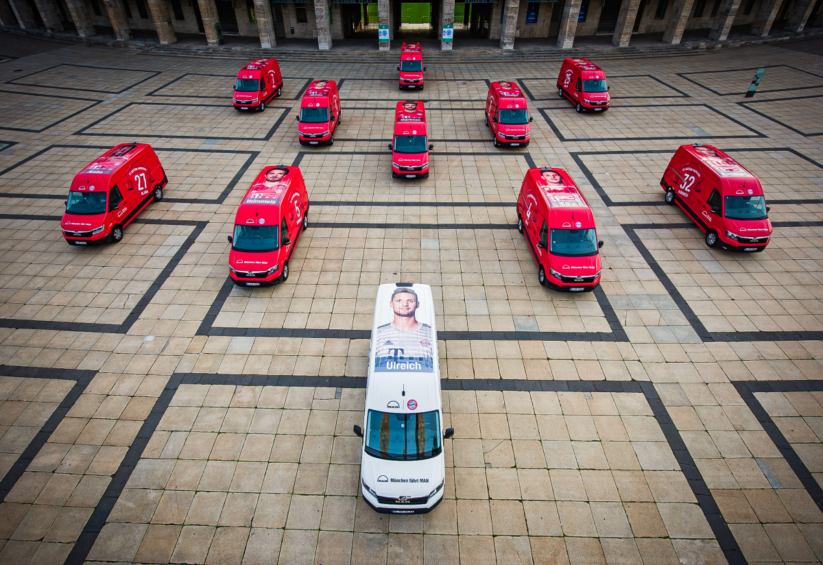 Pravdepodobnú zostavu FC Bayern Mníchov pred záverečným zápasom Nemeckého pohára zobrazuje jedenásť vozidiel MAN TGE s číslami dresov hviezd na bokoch a portrétmi hráčov na streche. Kompozícia vznikla pred olympijským štadiónom v Berlíne, na ktorom sa 19. mája vo finále Nemeckého pohára stretli mníchovskí šampióni s tímom Eintracht Frankfurt.