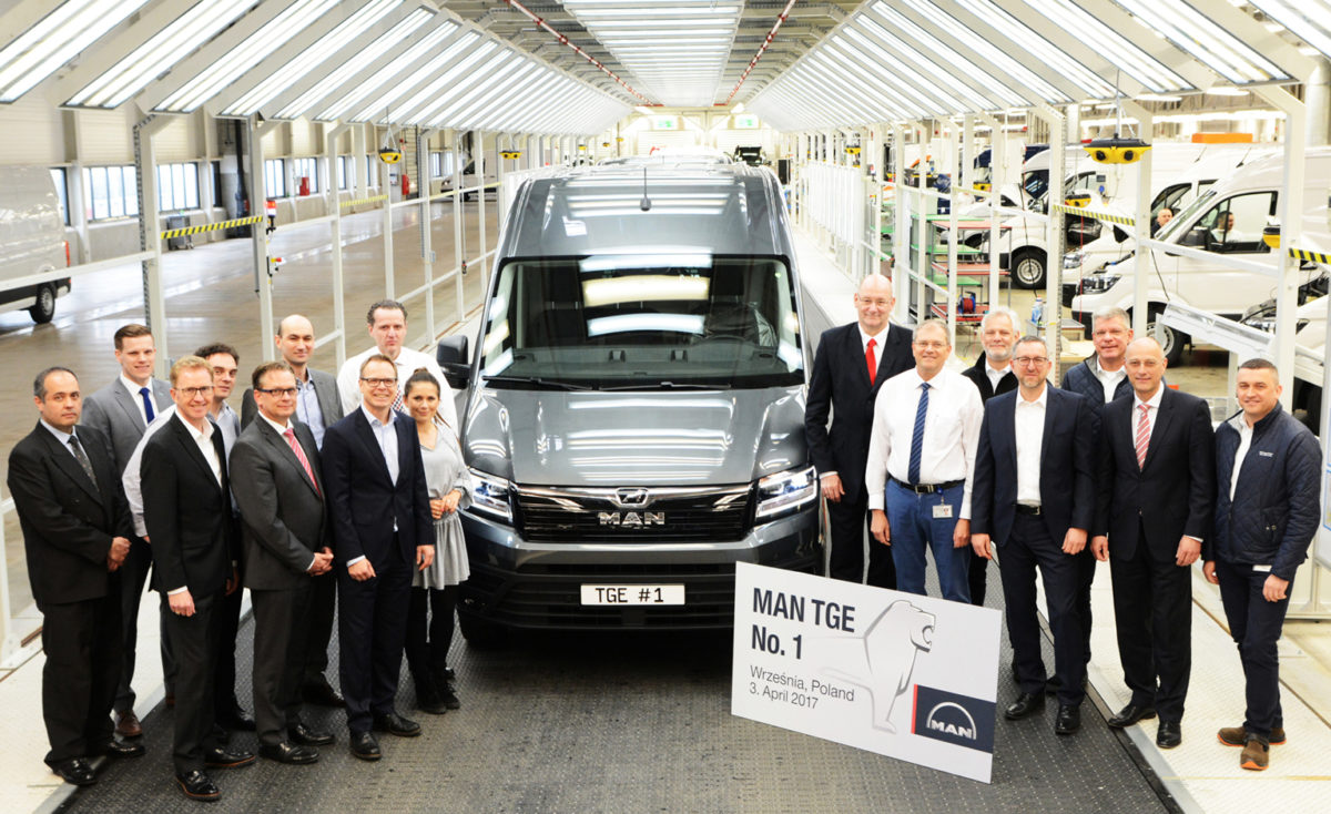 Mesiac po spustení predaja zišiel z linky novopostavenej fabriky v poľskom meste Wrzesnia prvý MAN TGE sériovej produkcie. Dodávkové vozidlo striebornej farby, ktoré má VIN …01, vyexpedovali spoločne pracovné tímy pod vedením Jensa Ocksena (generálny riaditeľ Volkswagen Poznaň) a Dennisa Affelda (senior viceprezident pre predaj vanov v MAN Truck & Bus).