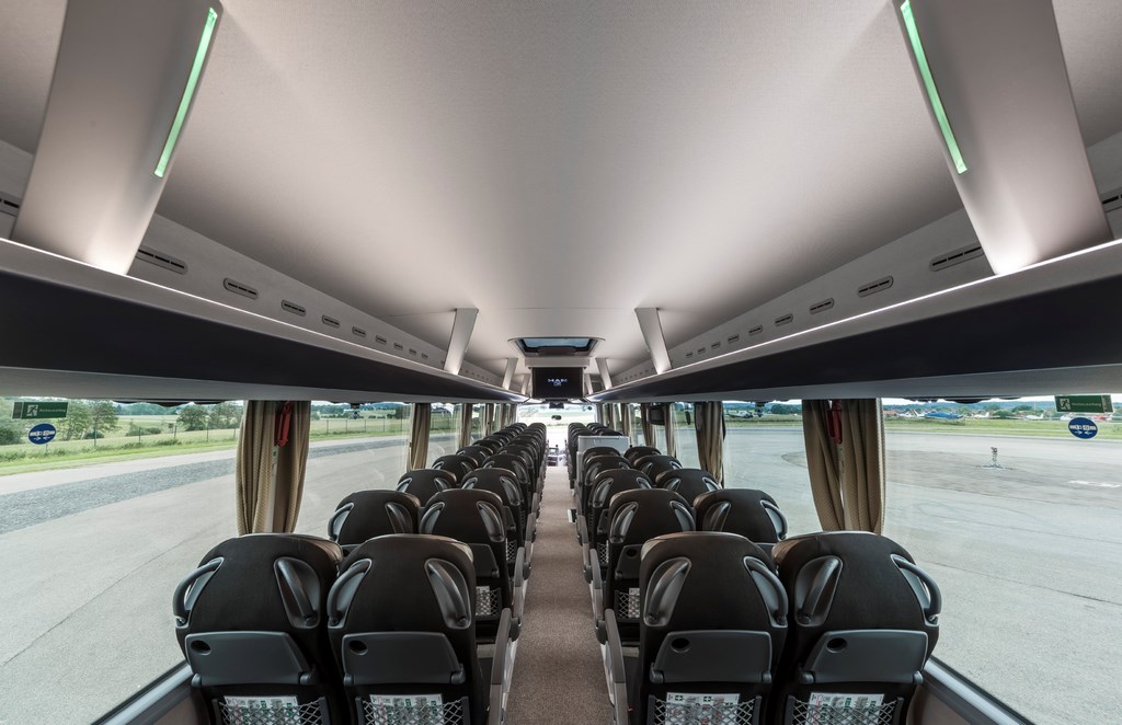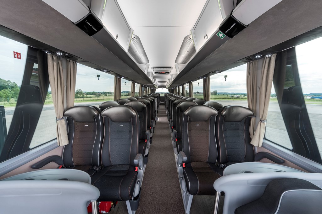 Samozrejme, že nový MAN Lion’s Coach prináša inovovaný interiér, ktorý tiež zvyšuje jeho atraktívnosť. Integrované pásy z LED osvetľujú priestor pod stropom teplým bielym svetlom, nový koncept farieb a obkladov využíva jasné a svieže tóny farieb. Upútajú aj police na batožiny – majú nový dizajn a boli predĺžené smerom k čelnému sklu. Ďalší presvedčivý prvok interiéru prichádza vo forme integrovaného nastavovania rôznych funkcií. Umožňuje napríklad plynule usmerňovať prúd vzduchu, zapínať a vypínať LED osvetlenie alebo reproduktor. Zásuvky na USB sú namontované na všetkých sedadlách, aby pasažieri mohli pri cestovaní bez obmedzení požívať mobilné telefóny a tablety.